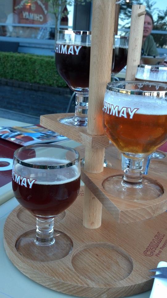 Chimay has three beers that are well known around the world and a fourth that is only served at the abbey and nearby cafe. Chimay Red (Première) is a dubbel style with a beautiful dark brown appearance. In the US it sometimes tastes like copper making me imagine a tea made from pennies and sadness. I am happy to report that the penny aroma and flavor is nowhere to be found when you’re drinking it at the source. Instead you get a nice rounded and complex maltiness with raisin, coriander, fig, apple, a hint of cinnamon, and a swirl of other dark fruit flavors.
