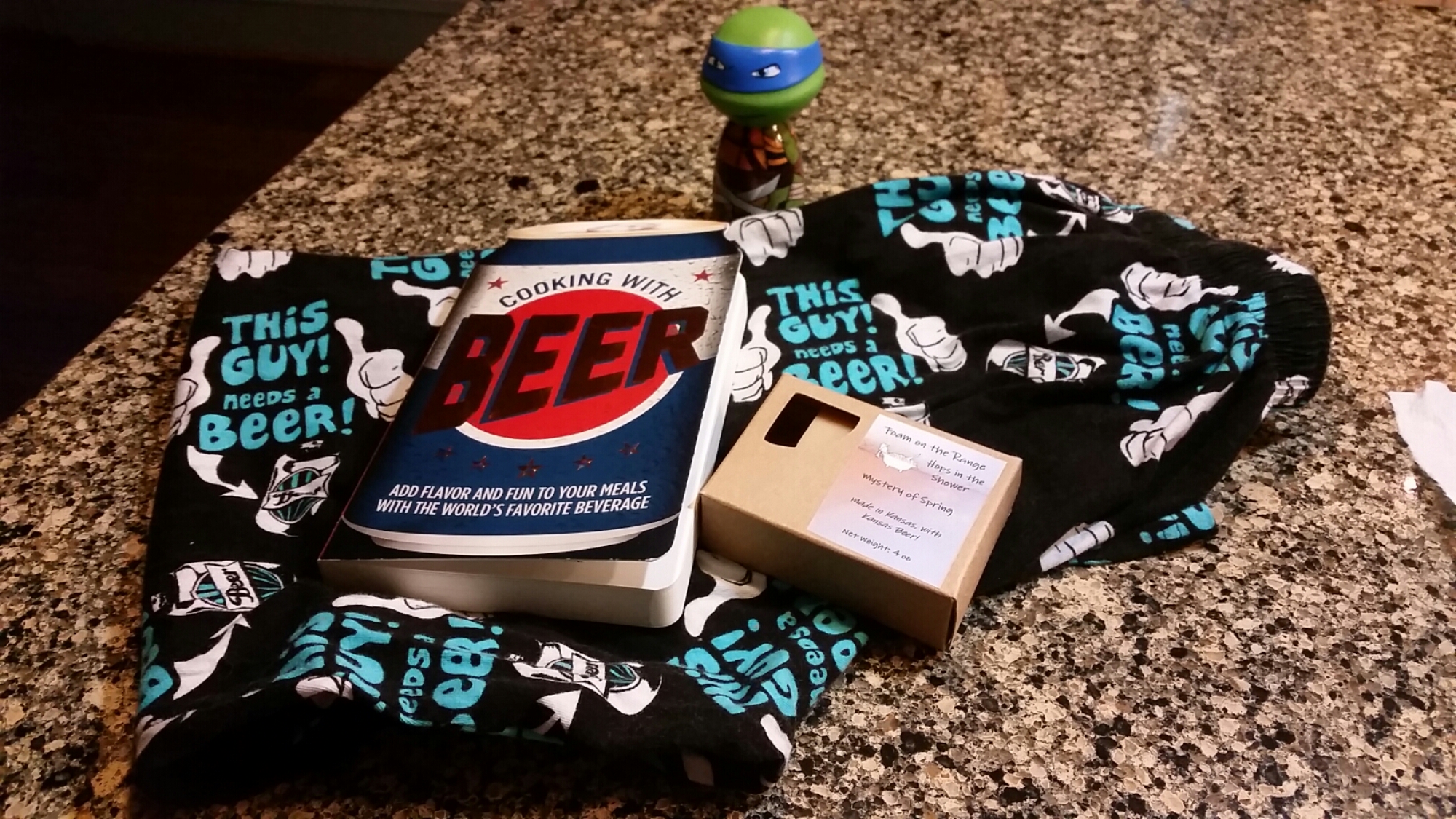 It never fails that I’m going to get some beer related gifts for Christmas, but this year the beer gifts started on Christmas Eve with pajama pants sporting “This Guy Needs a Beer!” for their mantra.